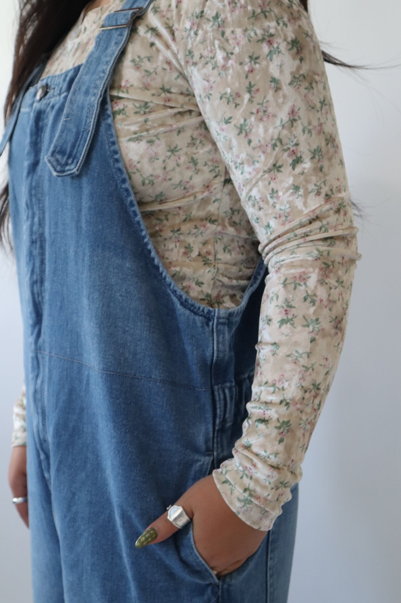 Floral Print Velvet Long Sleeve Top
