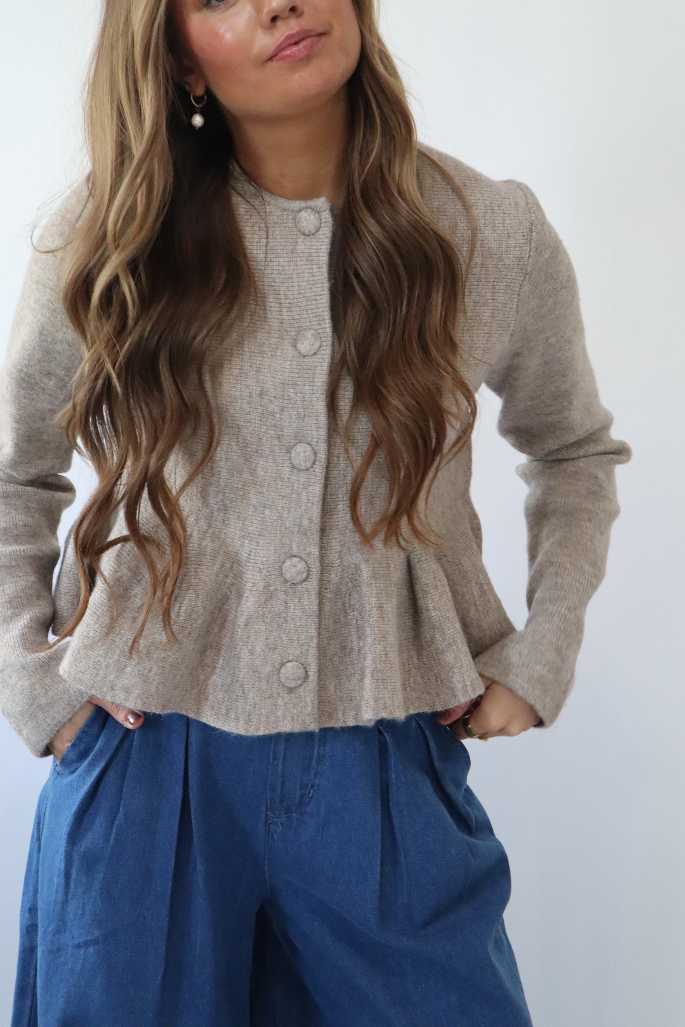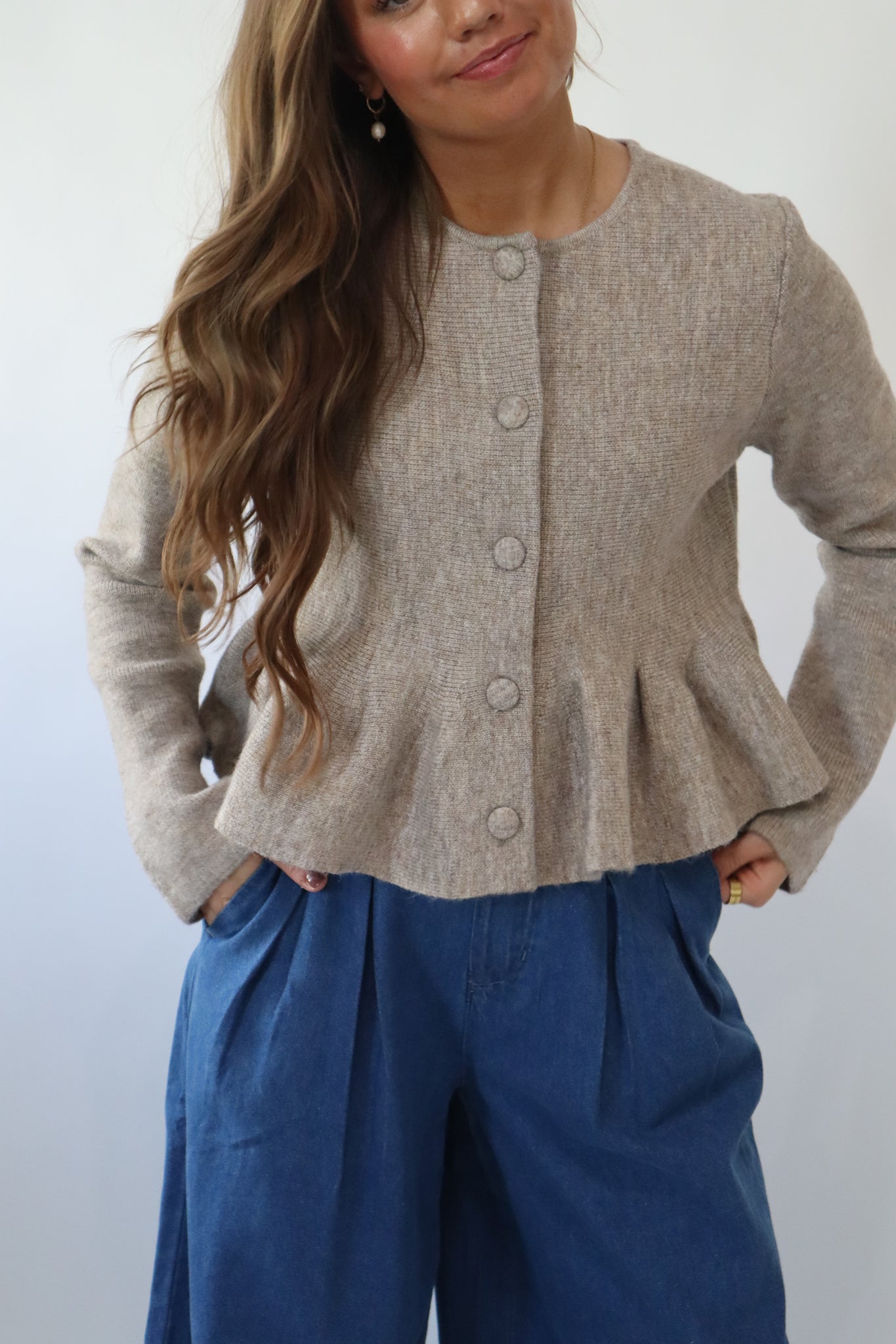Long Sleeve Button Down Peplum Sweater Knit Cardigan Top