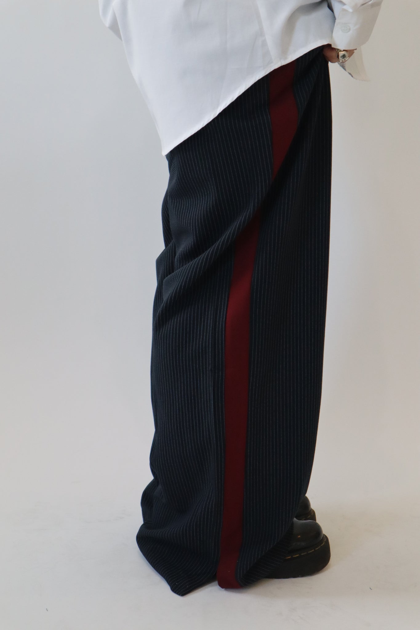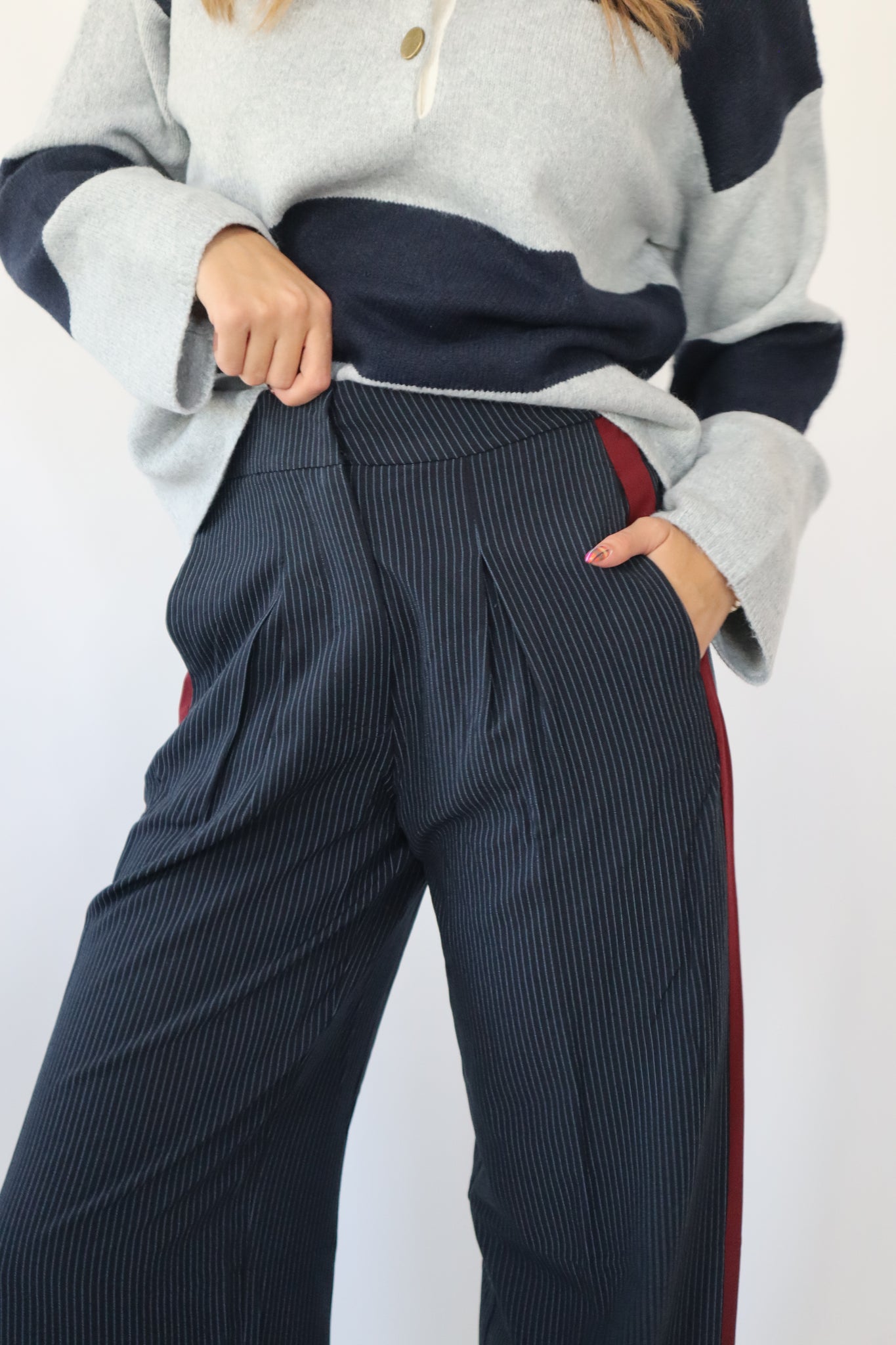 Navy Straight Leg Pinstripe W/ Red Stripe Pants