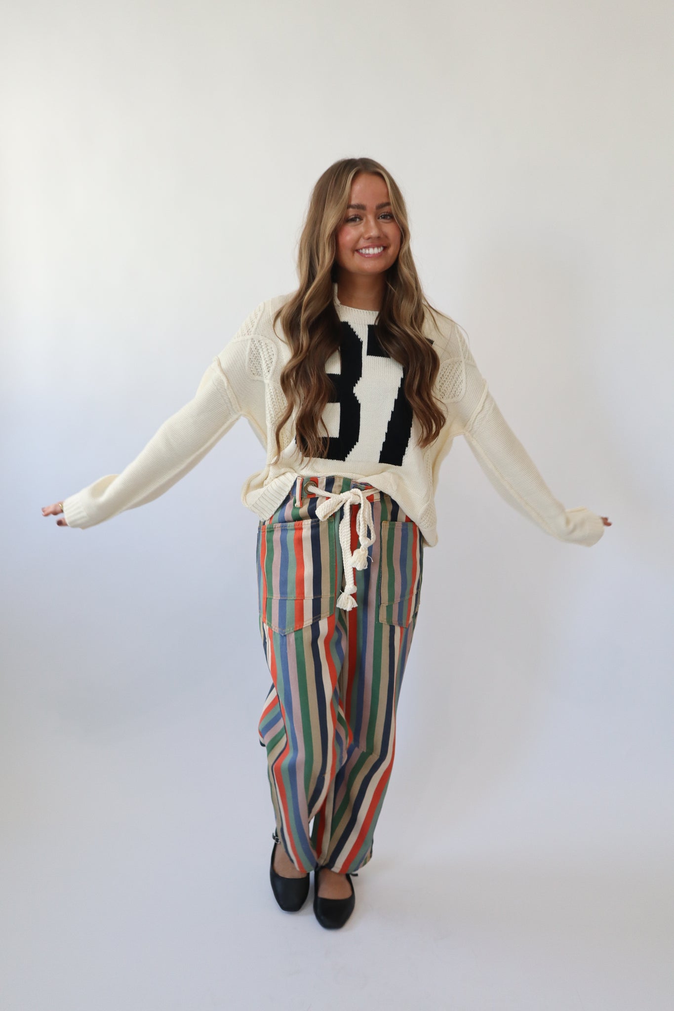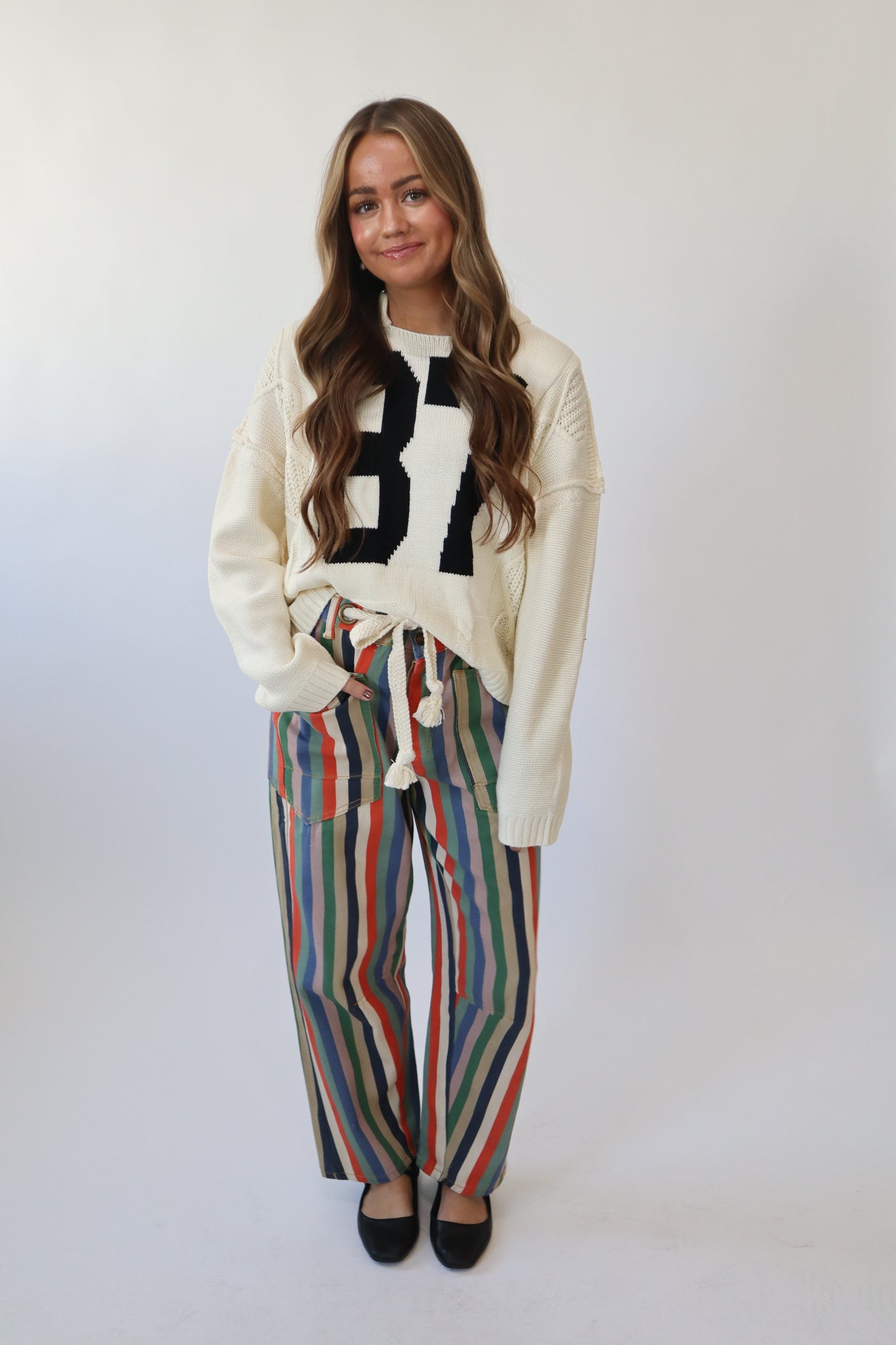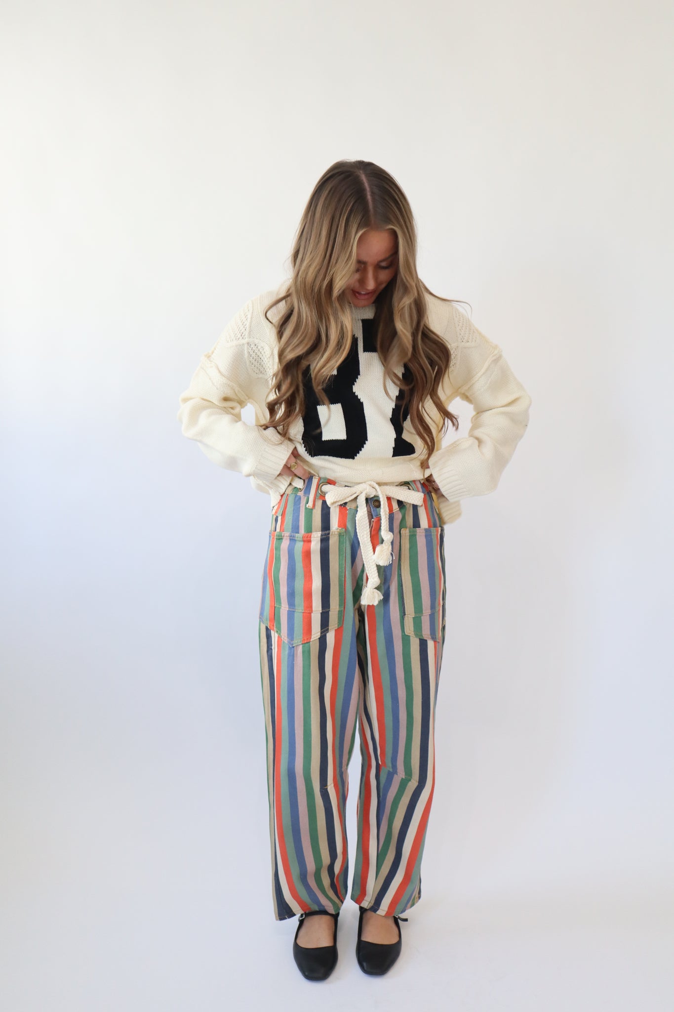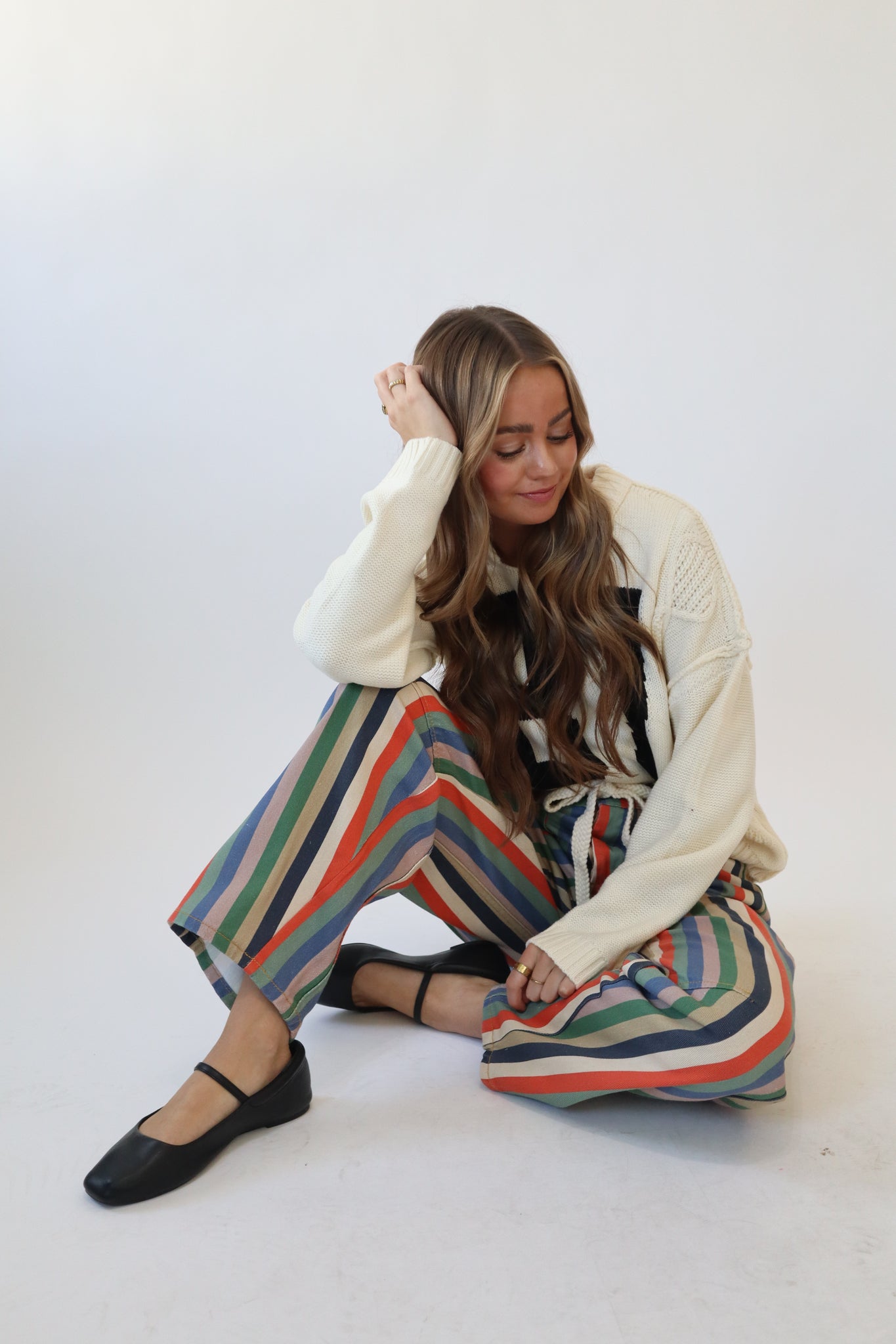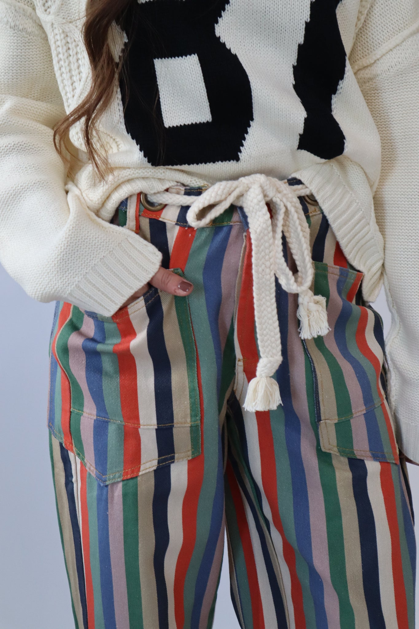 Washed Multi Color Stripe Rope Tie Relaxed Fit Pants