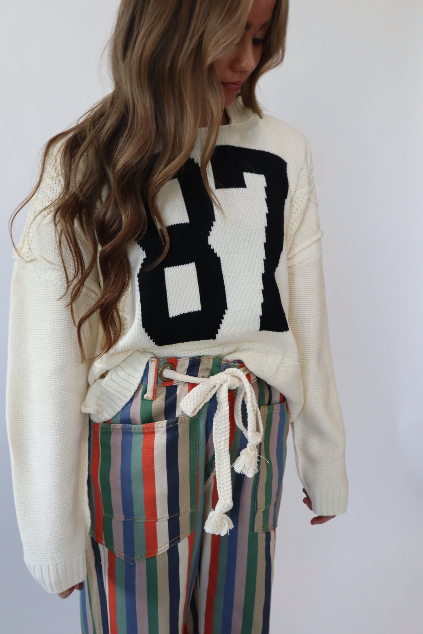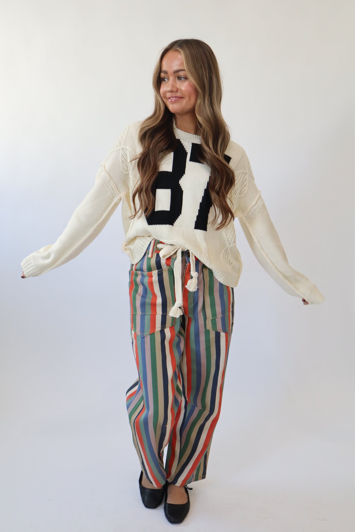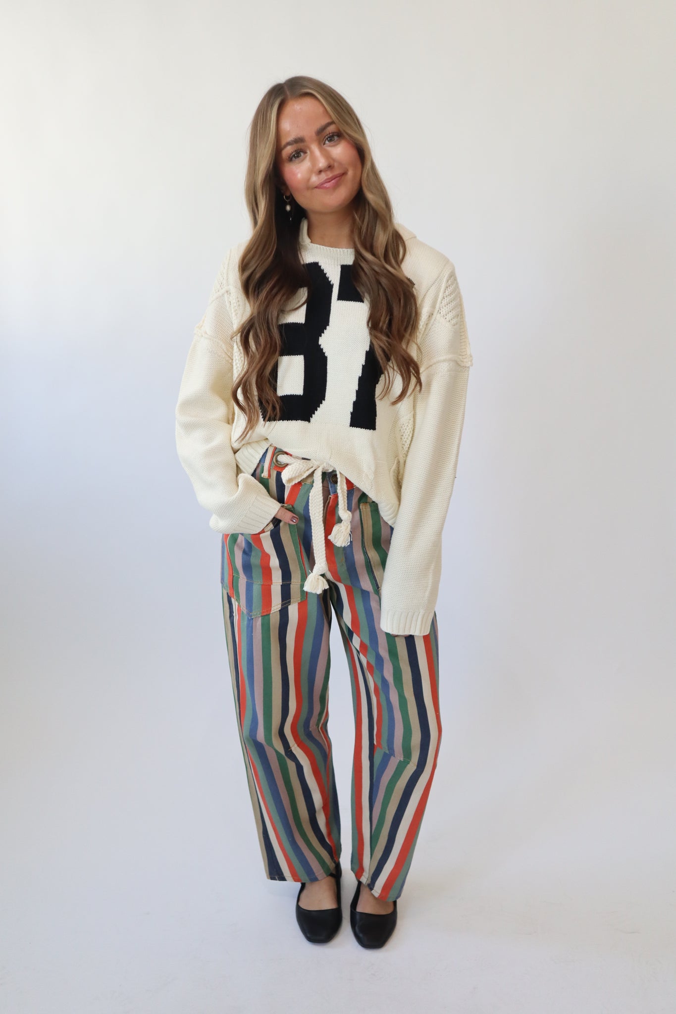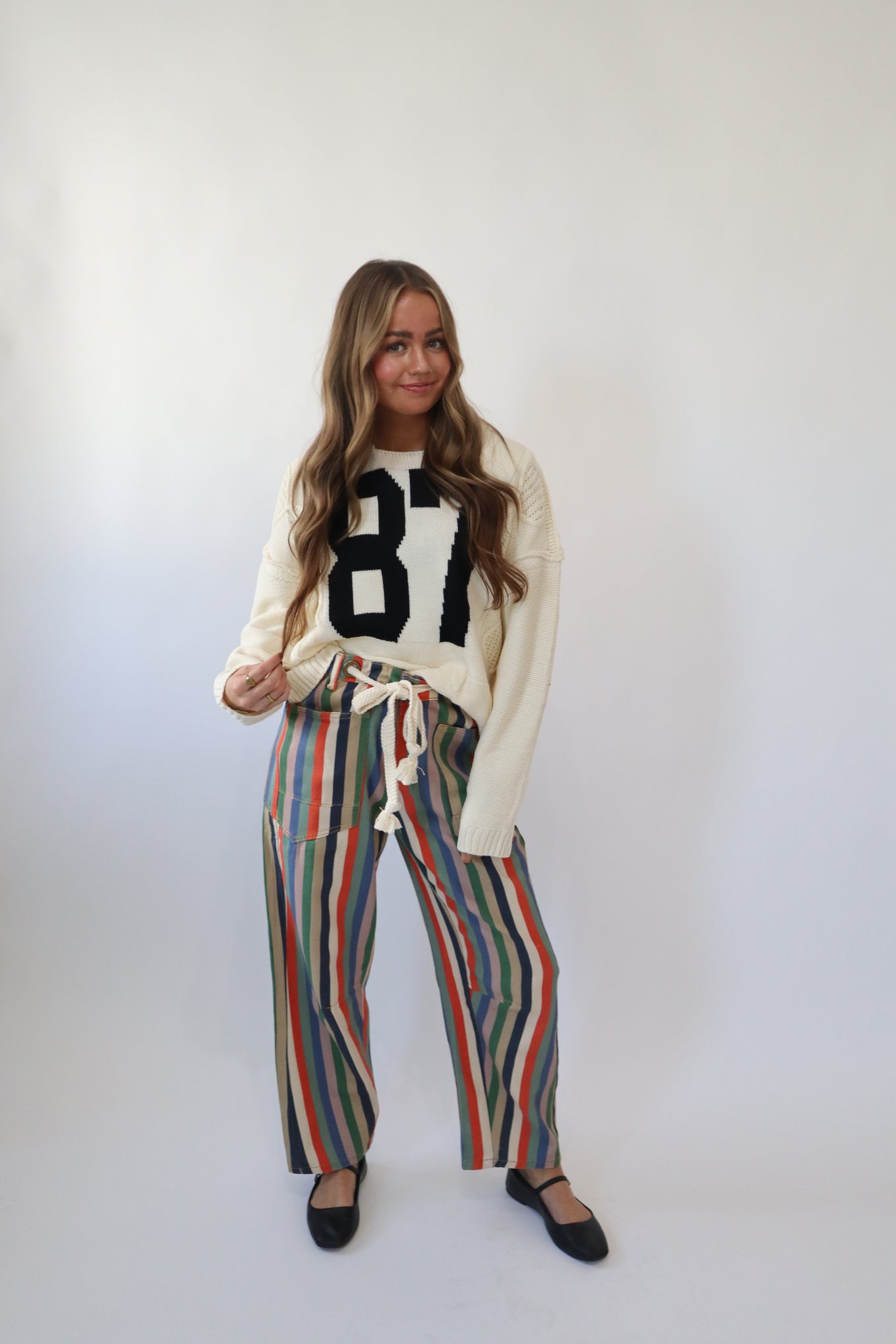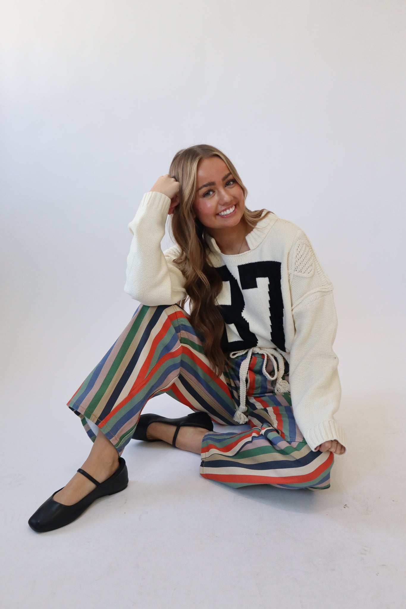 Washed Multi Color Stripe Rope Tie Relaxed Fit Pants